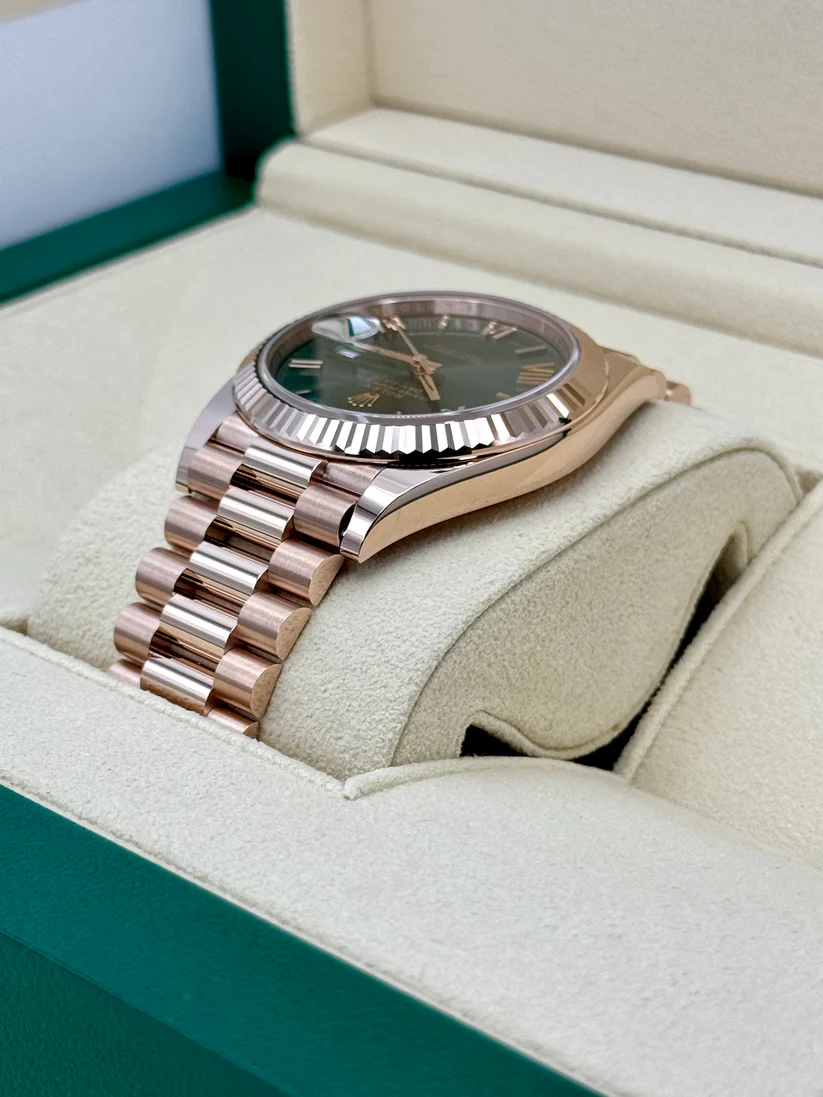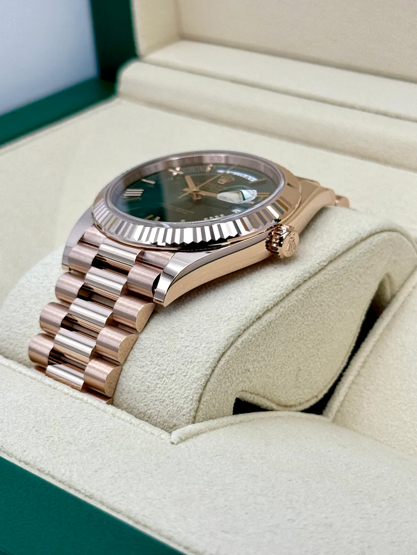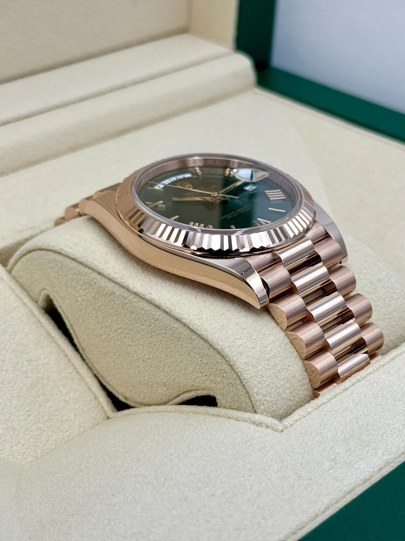 • NEW 2024 Rolex Day-Date 40mm 228235 Presidential Rose Gold Olive Dial