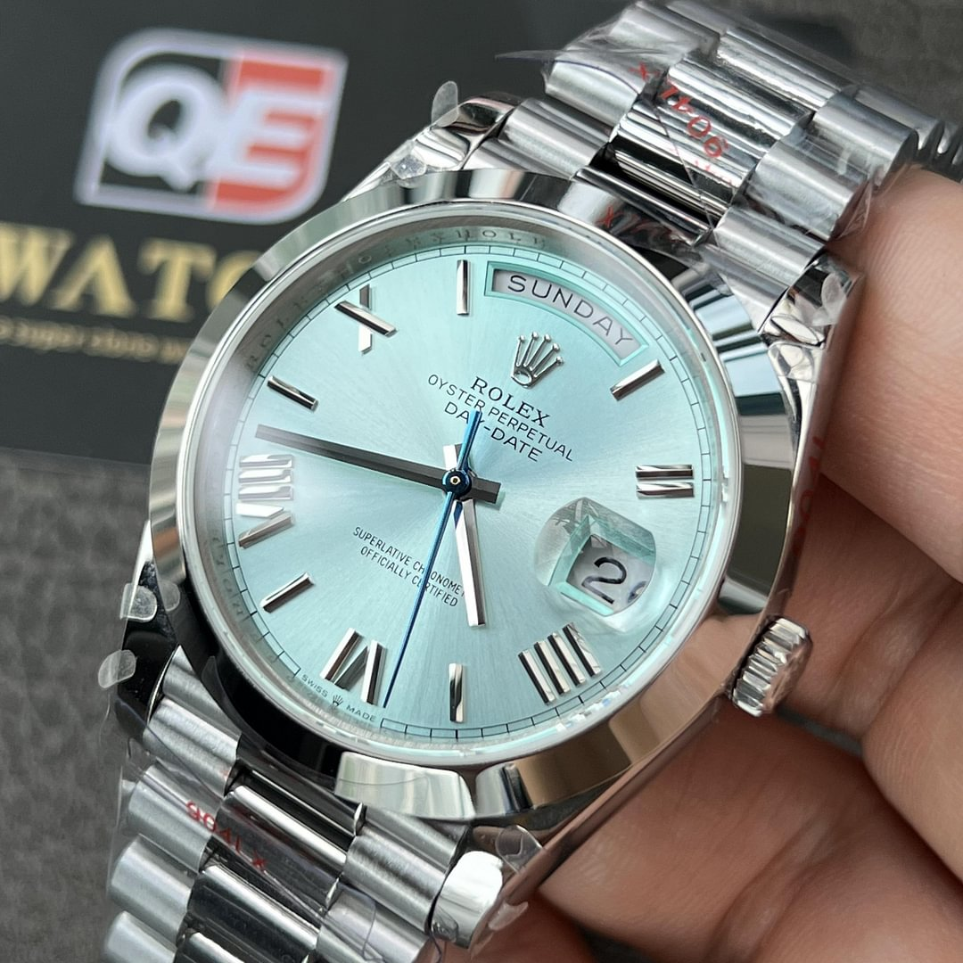 Rolex Day-Date m228206-0044 White gold Ice Blue Dial (Roman Numerals) Smooth Bezel President bracelet (40mm) Super Clone