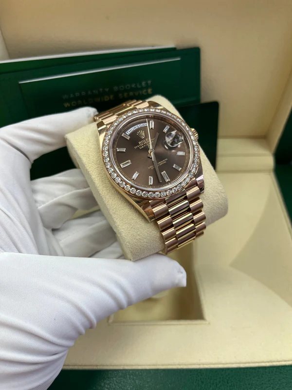 To preserve the beauty of its pink gold watches, Rolex created and patented an exclusive 18 ct pink gold alloy cast in its own foundry: Everose gold. Introduced in 2005, 18 ct Everose is used on all Rolex Oyster models in pink gold.