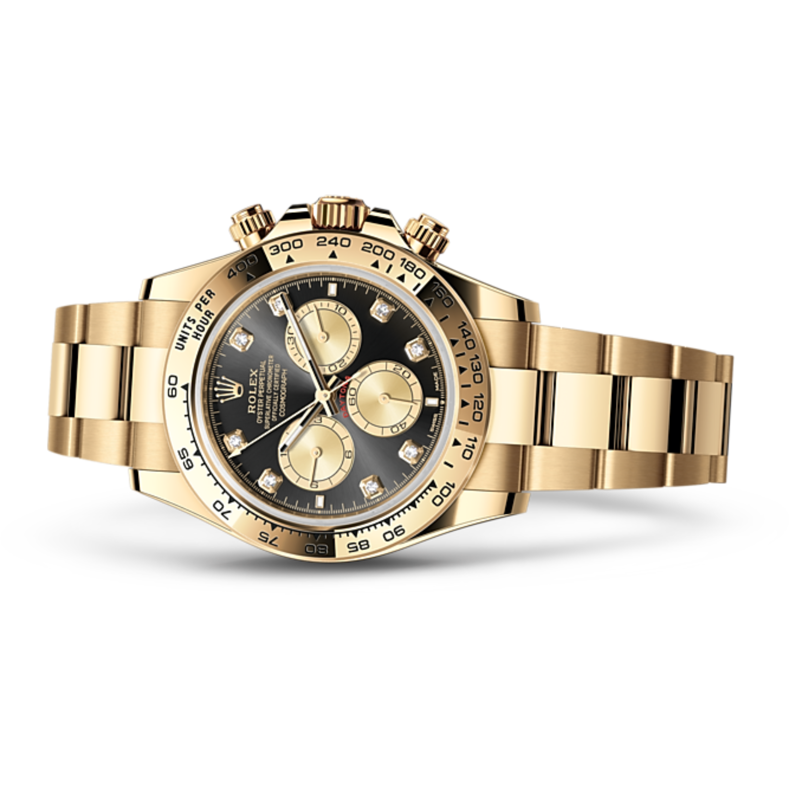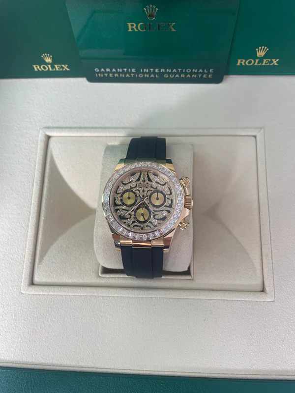 Rolex Cosmograph Daytona 116518LN Yellow Gold Oysterflex Diamond Black Dial Super Clone