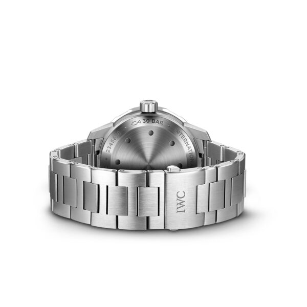 This IWC Aquatimer watch features a robust and high pressure resistant stainless steel case with a diameter of 42mm. The diving-relevant indications on the black dial are coated with green luminous material to ensure optimum legibility under water. At work inside the case is the IWC-manufactured 32111 caliber, which features automatic winding and a power reserve of 120 hours. This model is water-resistant to 305 meters and is fitted on a 5-link stainless steel bracelet.