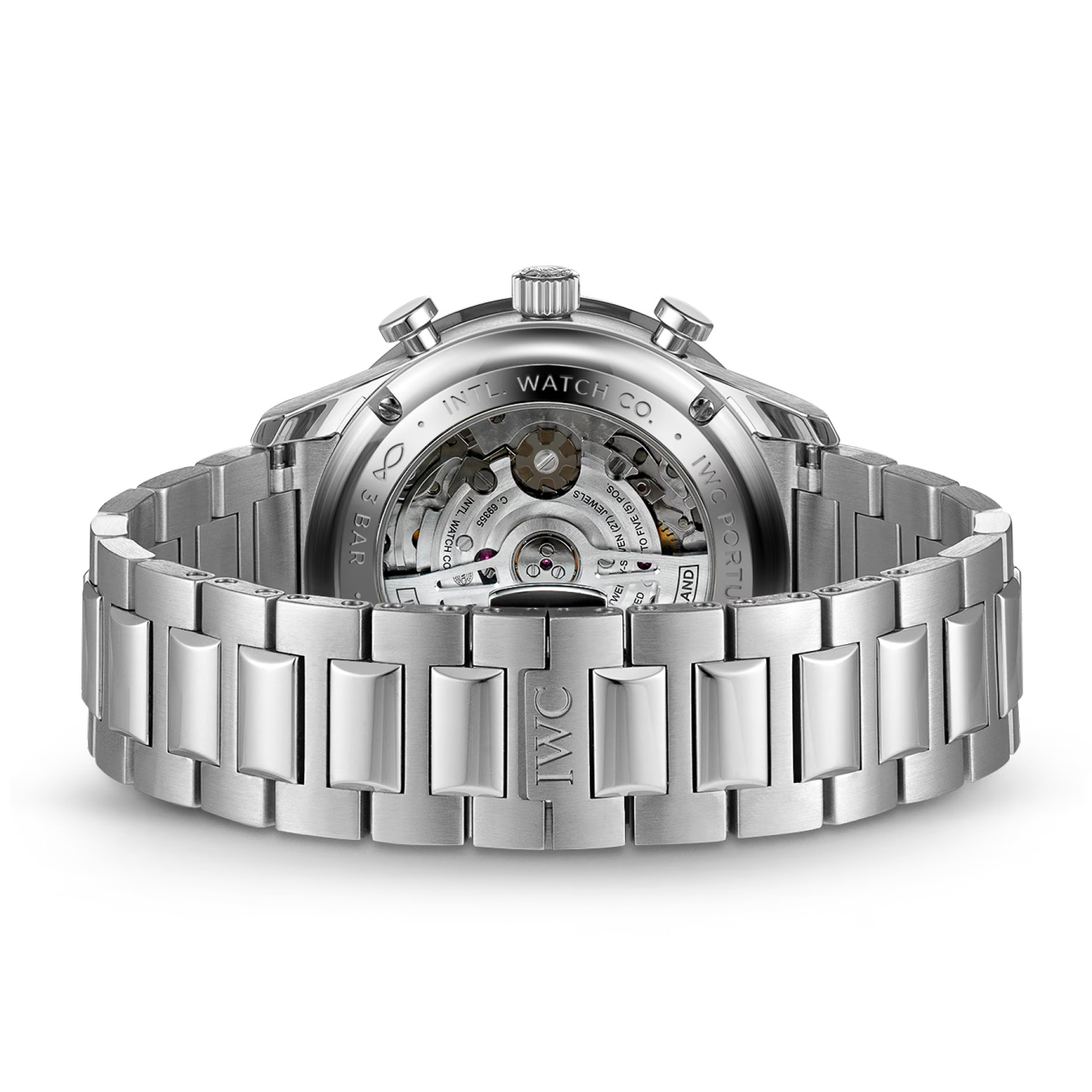 The IWC Portugieser Chronograph 41mm is one of IWC’s most iconic models, known for its harmoniously designed chronograph and sporty elegant look. It features a silver-plated dial with blue hands and appliques, housed in a steel case with a stainless steel bracelet. The clear, functional dial boasts a peripheral precision scale, recessed totalizers, and a quarter-second scale, which not only allows for precise reading but also serves as a reminder of the Portugieser’s origins as a nautical precision instrument for the wrist. The watch is powered by the IWC-manufactured 69355 calibre, which offers up to 46 hours power reserve and is visible through a sapphire-glass case back.