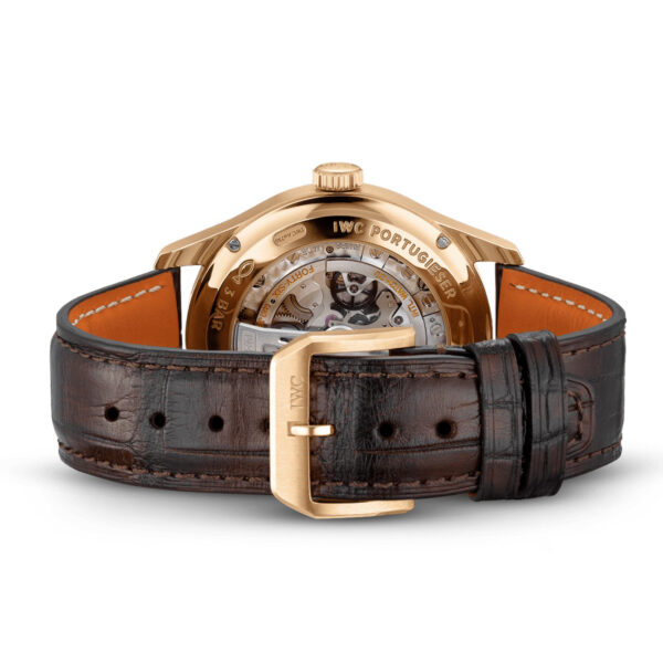 The IWC Portugieser Perpetual Calendar 42mm combines the popular complication developed by legendary watchmaker Kurt Klaus with an in-house movement for the first time, highlighting IWC’s commitment to innovation and quality. It features a silver-plated dial with three subdials that elegantly display the date, day, month, leap year, and moon phase. This timeless and elegant Portugieser is housed in an 18ct 5N gold case, completed with matching gold-plated hands and 18ct gold appliques to provide a luxurious look. The watch is fitted with a brown alligator leather strap from Santoni, and is powered by the IWC-manufactured 82650 calibre, which offers up to 60 hours of power reserve.