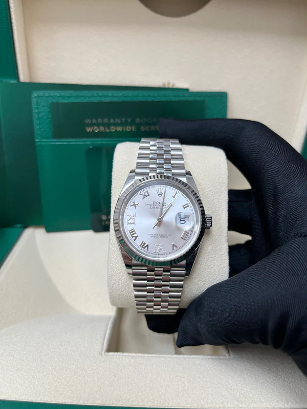 • Rolex DateJust 36mm m126234-0025 Stainless Steel on Jubilee with White Dial (Roman Numerals) Super clone