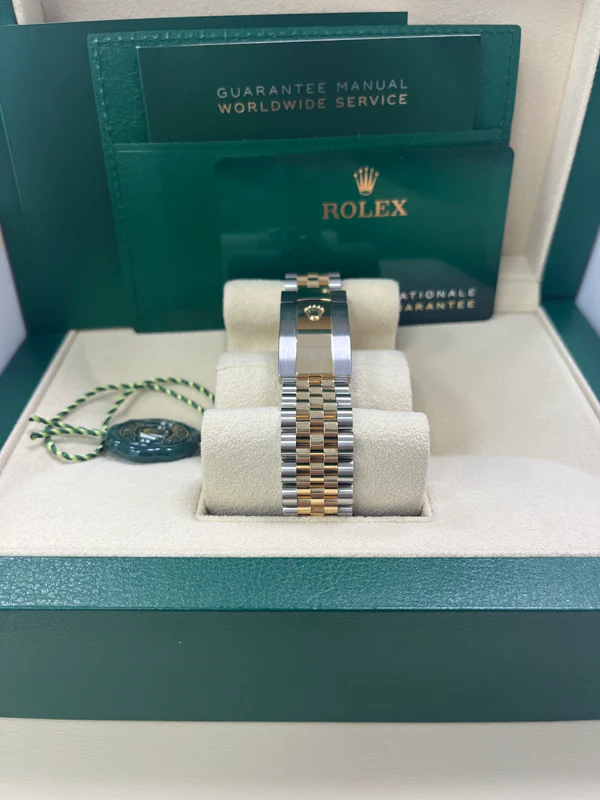 This dial features diamonds in 18 ct gold settings. The fluted motif is a graphic interpretation of an iconic Rolex design element: the bezel fluting found exclusively on some of the brand's Classic watches. Made from age-old materials, combined with cutting-edge technology, the fluted-motif dial brings depth and sophistication to the timeless Datejust.